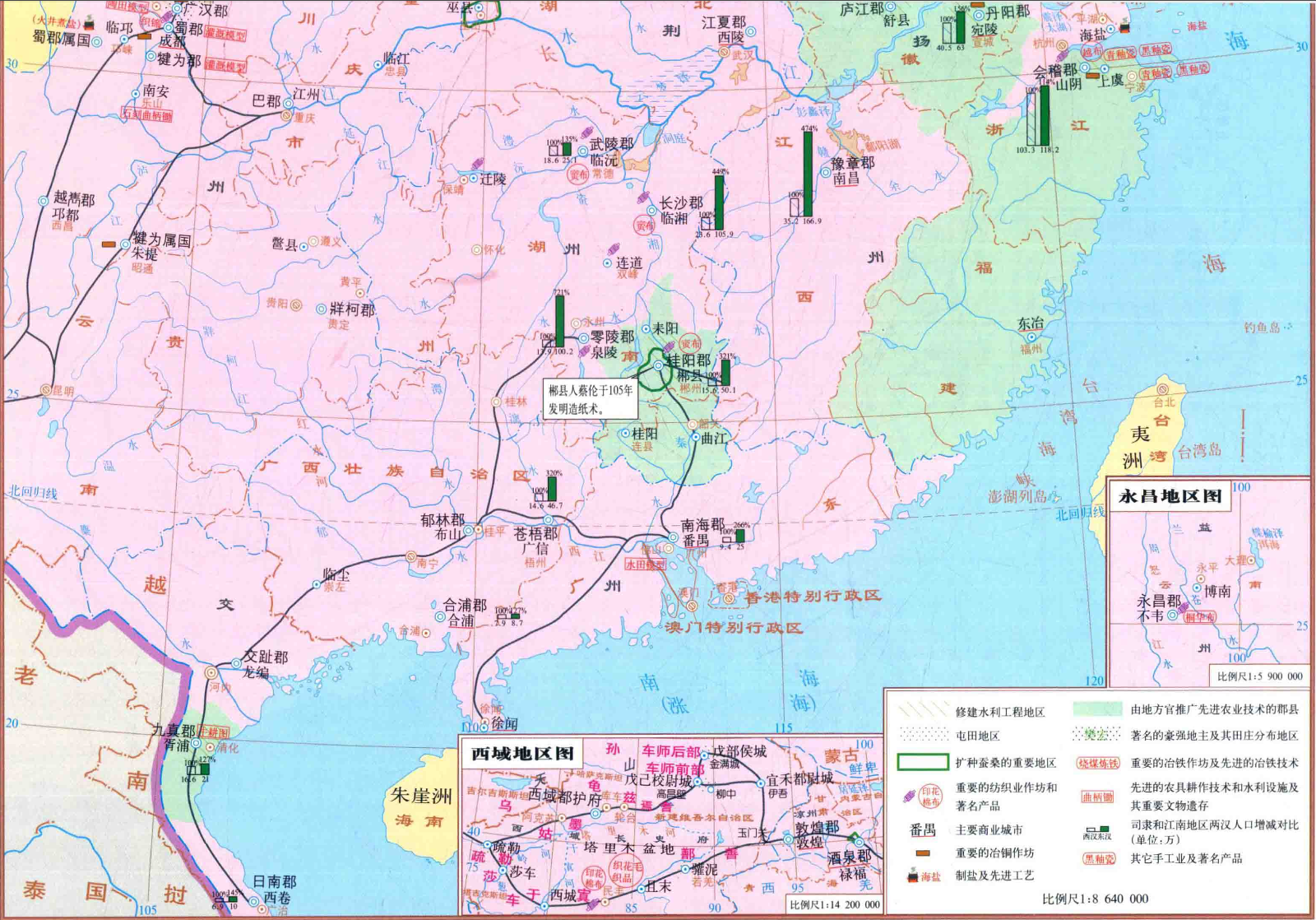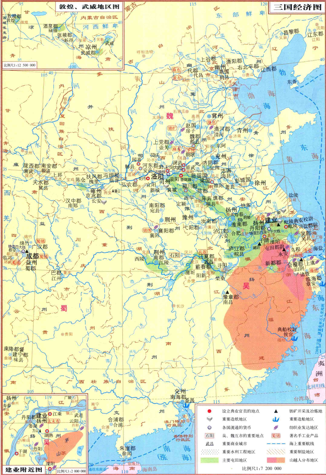 因此,以蜀汉的商业和贸易形势来看,三国之中,它应是商品净输出地。换句话说,蜀汉应该是商品交换等价物的净输入地。当时充当商品交换等价物的,一是钱币、一是布帛。但是蜀锦繁盛,且有出口,无必要对外获取布帛,因此蜀汉流入应主要是钱币。但是,实际中,我们看到,蜀地几乎没有魏吴钱币出土,反而是吴地各种系列的蜀汉钱币都有。因此,这就出现了一个悖论:蜀汉既输出大量特产,又输出大量货币,要弥合这个悖论,只有一个可能,就是史书失载了蜀汉曾经大量进口的物资。而这个物资,根据上文的分析,最可能的便是粮食。吴的粮食生产应当是较为充足的,不仅是孙权重视亲自垂范的缘故,更因其境内囊括有中国古代最著名的两大粮食生产基地,江汉平原和长江下游平原。虽然两大平原,在两汉时开发尚嫌不足,但通过孙吴数十年的开发却也达到相当程度了,毕竟东吴之后,就是靠着这两大平原支撑起东晋南朝数百年偏安的。