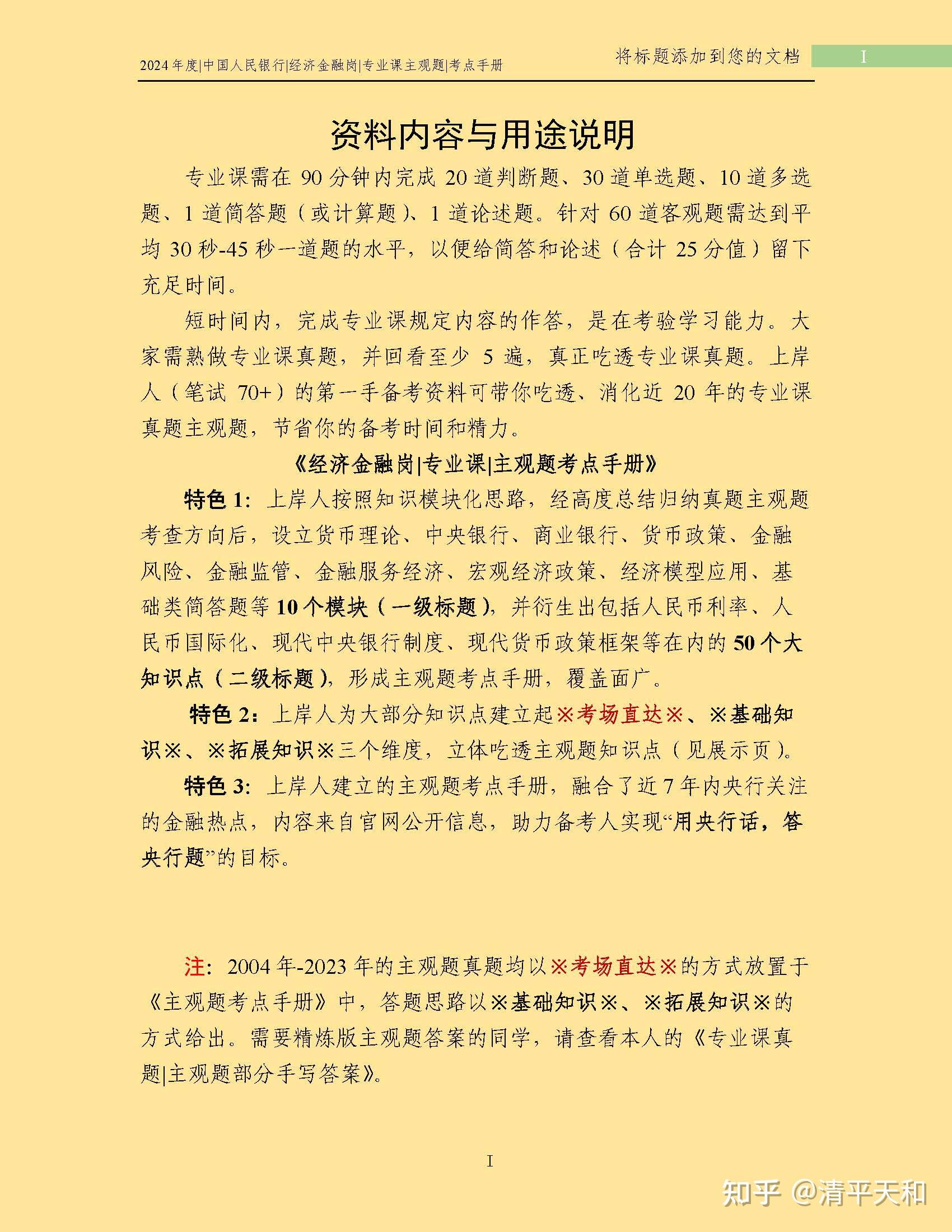 中国人民银行经济金融岗「主观题考点手册」经验分享 ...